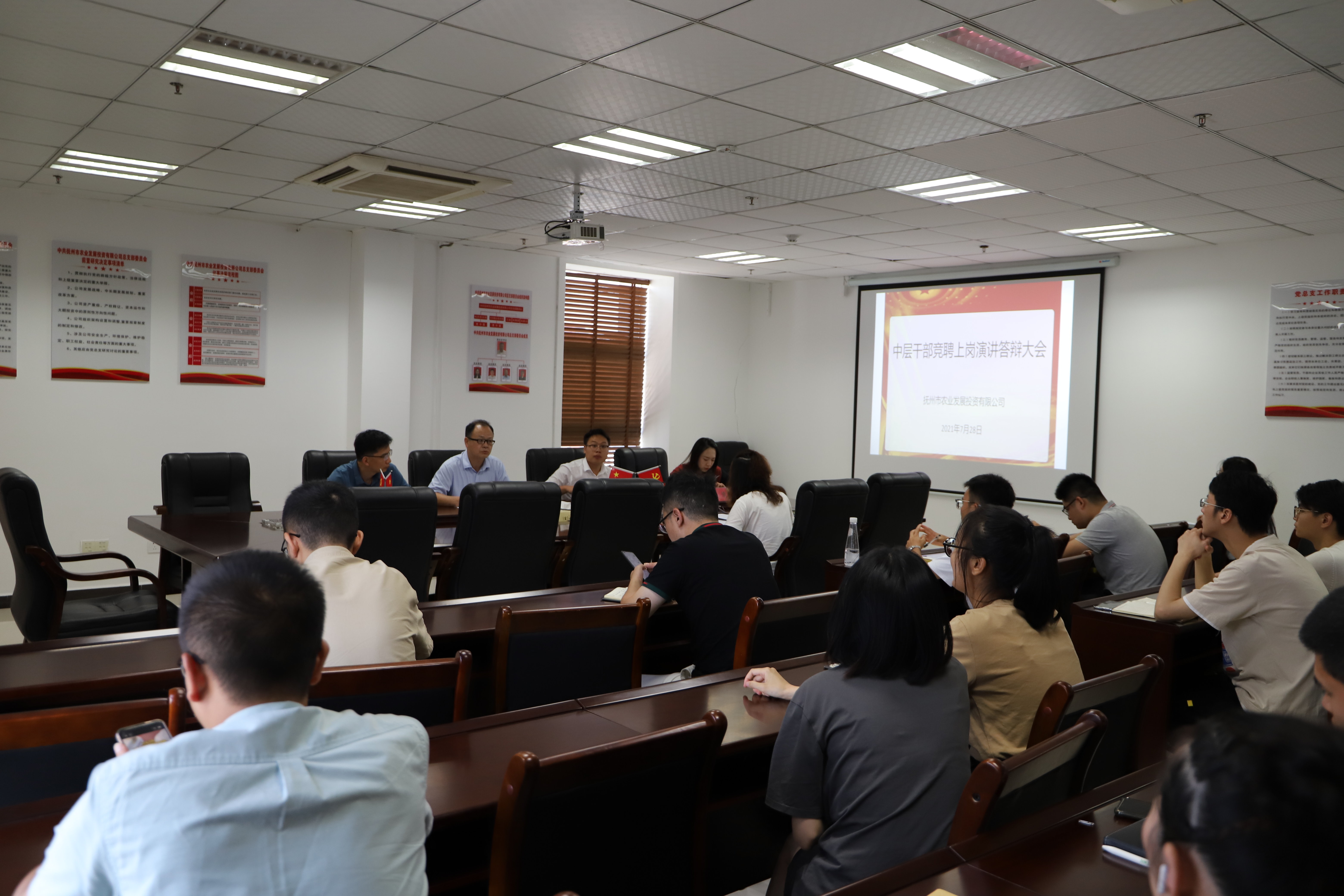 7月28日,市農(nóng)發(fā)投公司中層干部競聘上崗演講答辯會在公司大會議室舉行。公司領導班子成員、中層干部及部分職工代表共25人參加了會議。