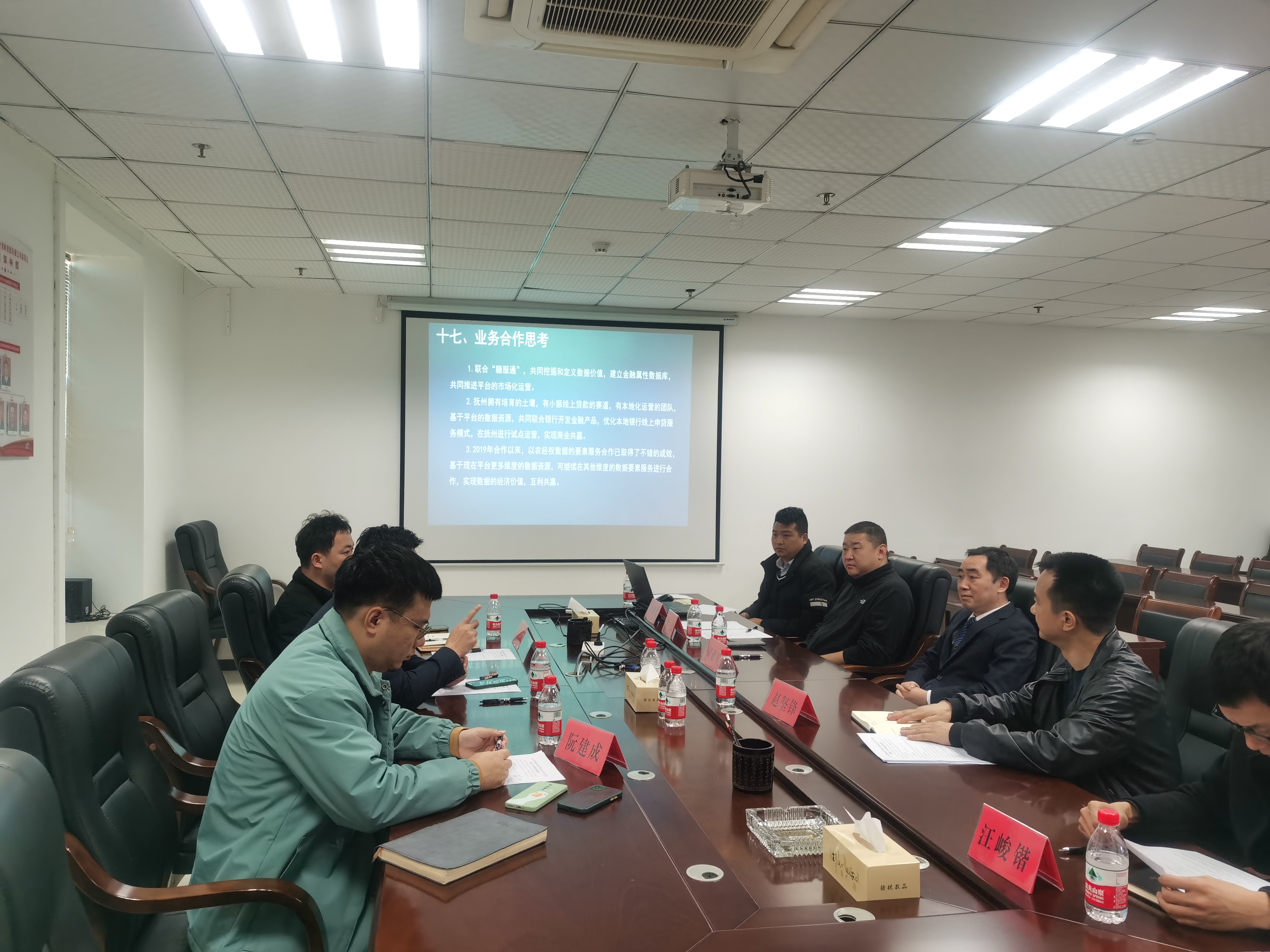 胡建軍對調(diào)研組的到來表示歡迎,對數(shù)字江西在潤宇信息科技公司建設(shè)撫州市金融服務(wù)平臺和撫州市“兩山”轉(zhuǎn)化中心平臺過程中給予的指導(dǎo)幫助表示感謝。他指出,發(fā)展數(shù)字經(jīng)濟是農(nóng)發(fā)集團的重要戰(zhàn)略方向,潤宇信息科技公司經(jīng)過近幾年來苦練內(nèi)功,成功開發(fā)運營兩大市級數(shù)字平臺,已具備加快發(fā)展的基礎(chǔ)和條件。數(shù)字江西作為數(shù)字經(jīng)濟領(lǐng)域的省級隊,在數(shù)字政府、數(shù)字金融、數(shù)字產(chǎn)業(yè)等方向具有雄厚的技術(shù)實力和豐富的運營經(jīng)驗。希望雙方以此次座談為契機,進一步加強互動交流,擴大合作范圍,加快推進合作項目落地見效,實現(xiàn)雙方互利共贏、共同發(fā)展。